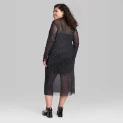 Women’s Long Sleeve Rhinestone Mesh Midi Dress – Wild Fable™ Black