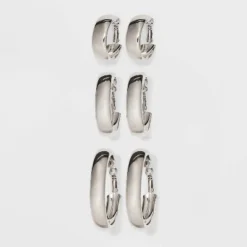 Wide Hoop Earring Set 3pc – Wild Fable™ Silver: Clip-In Clasp, Nickel-Free Metal, 2″ Diameter