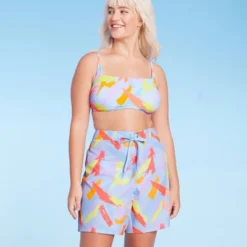 Women’s Ribbed Side-Tie Scoop Front High Leg Extra Cheeky Bikini Bottom – Wild Fable™ Geo Print