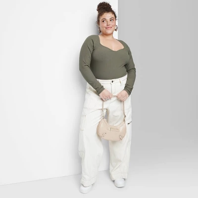 Long-sleeve seamless shirt from Wild Fable™ tailored in a fitted silhouette with a length that hits below the waist. Made from heavyweight ribbed fabric with a hint of spandex for stretchy comfort. Designed with a sweetheart neckline in a solid hue.