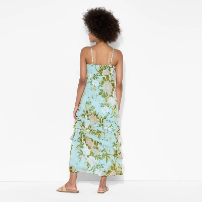 Women’s Tie Front Ruffle Midi A-Line Dress – Wild Fable™ Blue