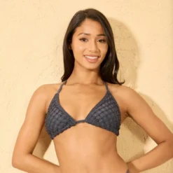Women’s Beaded Crochet Medium Coverage Triangle Bikini Top – Wild Fable™ Dark Blue