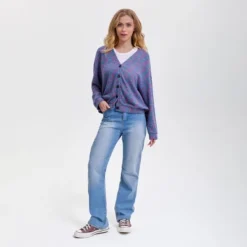 Women’s V-Neck Button-Front Cardigan – Wild Fable™ Purple Abstract